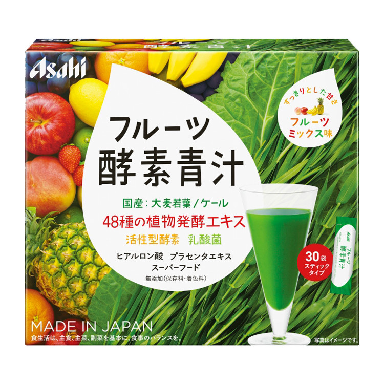 ●원재료/보리새잎분말(보리새잎(규슈산)), 수용성 식이섬유효 추출물분말(밀 포함), 효모추출물분말, 사과과즙분말, 피치과즙분말, 기타